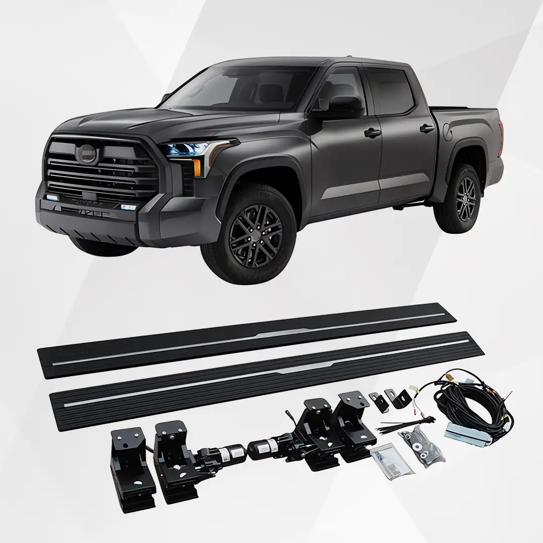 Upgrade accessibility and style on your Toyota Tundra with these premium electric power side step running boards. Designed for convenience and modern functionality, these automatic running boards extend outward when the door opens and retract neatly under the body when the door closes, maintaining a clean and aerodynamic look.
