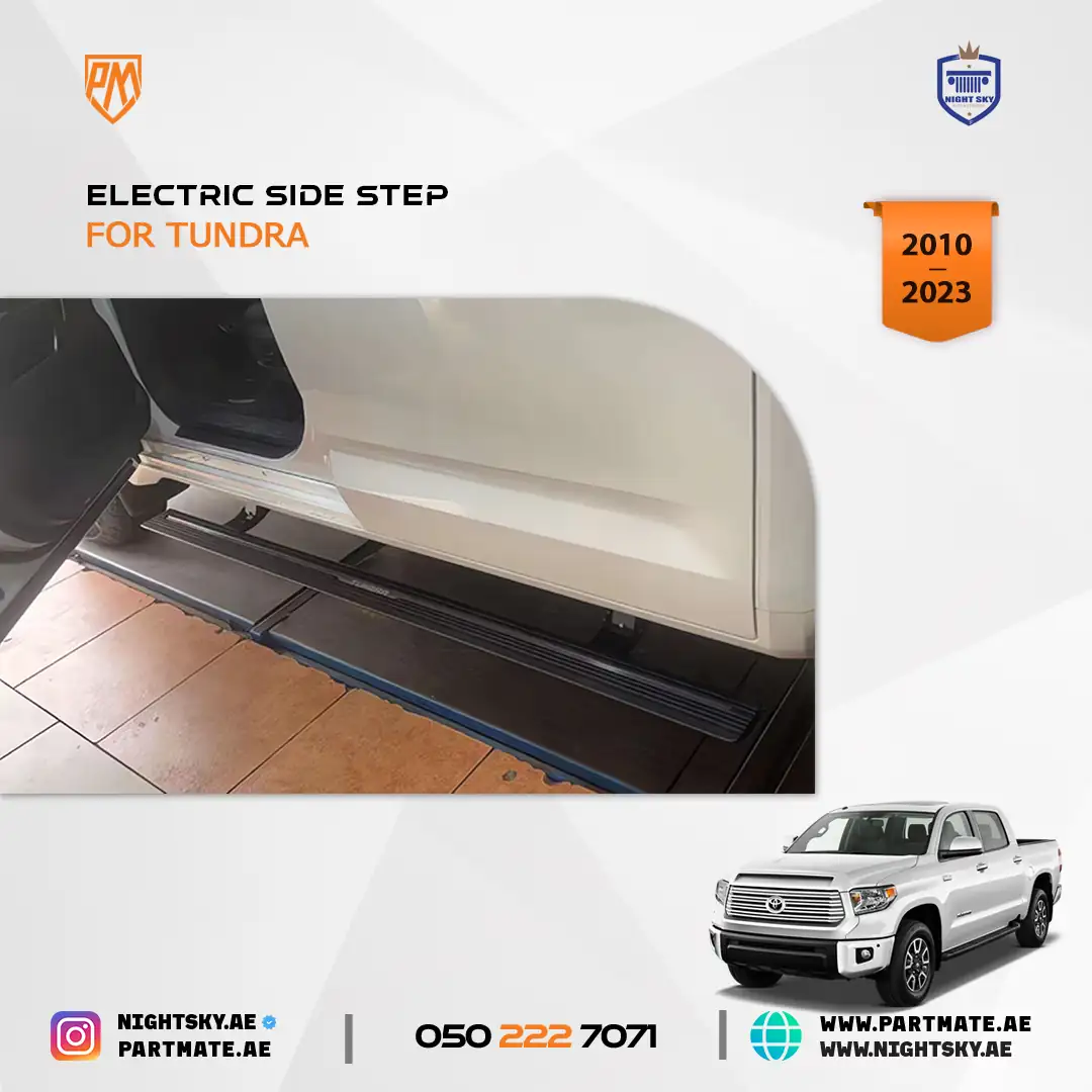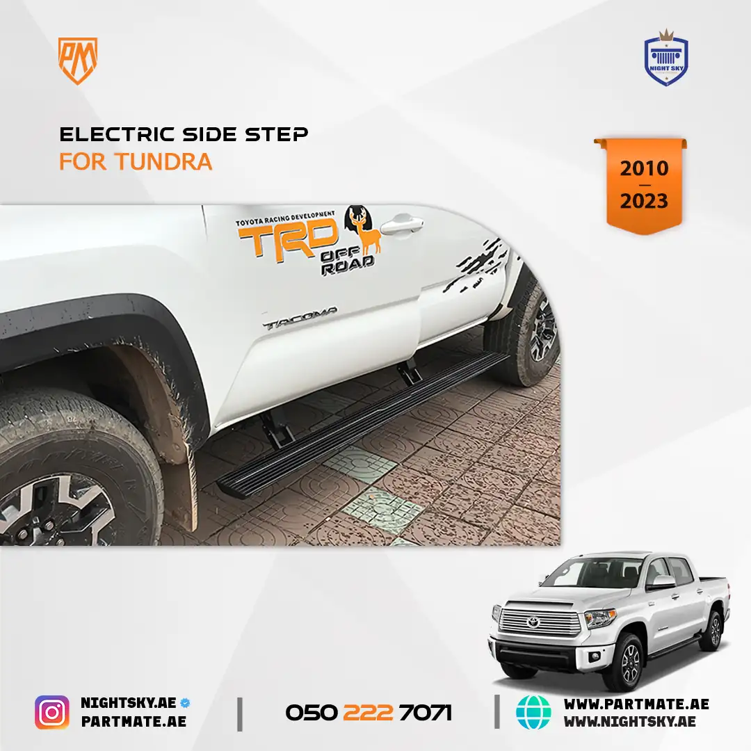 For large pickup trucks like the Tundra, powered running boards make entering and exiting the vehicle much easier for passengers of all ages. They also add a premium appearance that complements the rugged design of the truckβperfect for drivers across Dubai and the UAE who want both practicality and style.