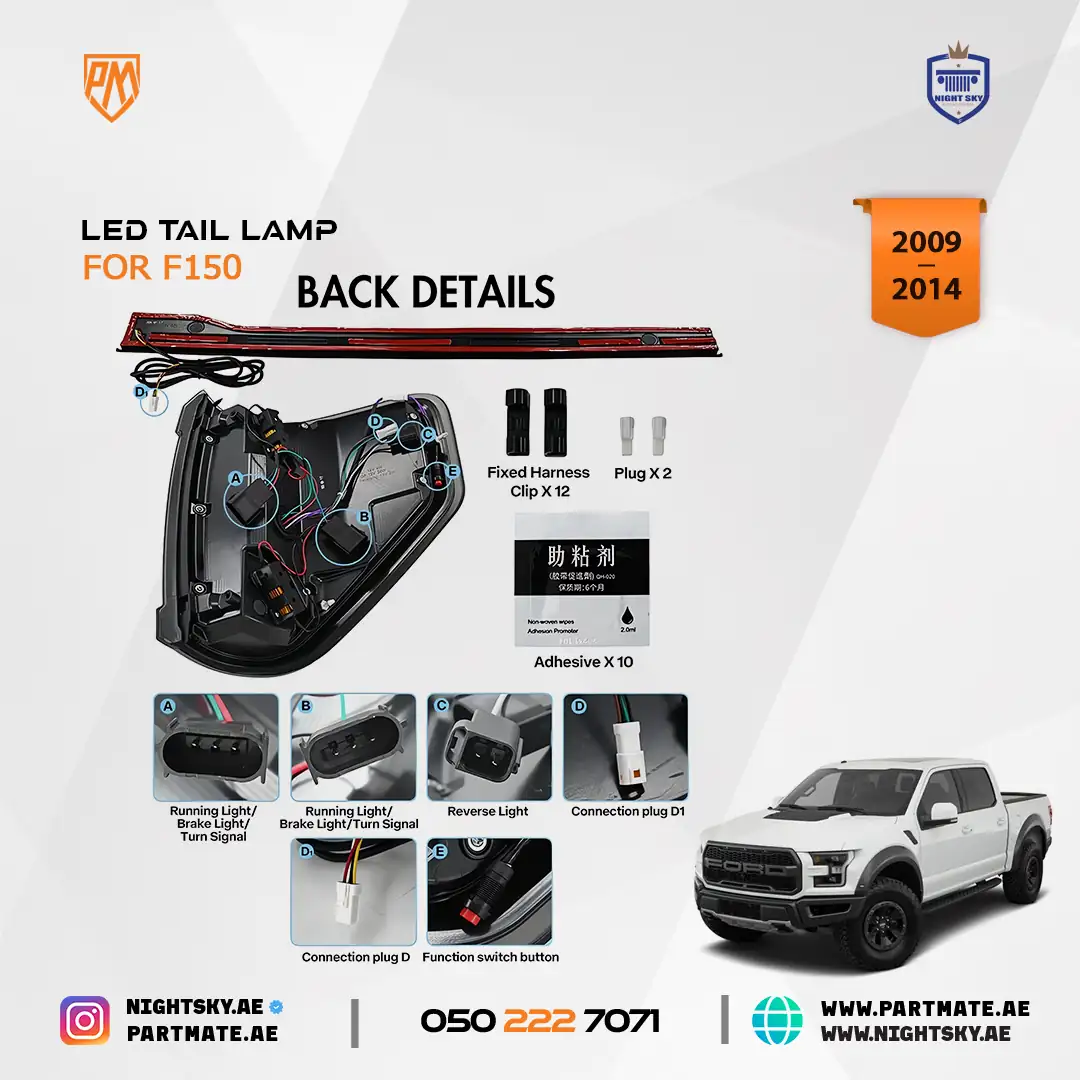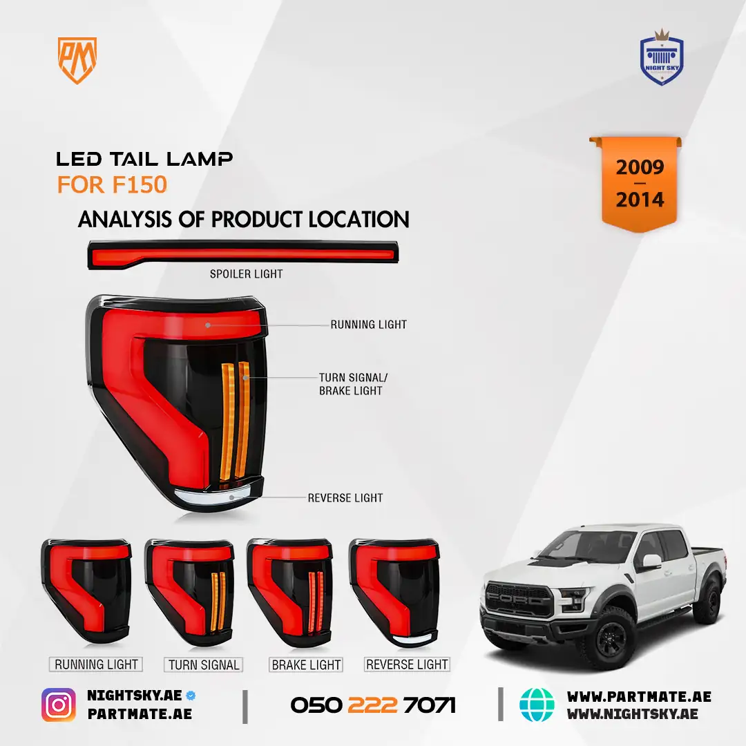 The LED Tail Lights with Sequential Turn Signal and Center Light are designed to enhance rear visibility, safety, and modern styling for the Ford F-150 2009–2014. Featuring dynamic sequential indicators and a center light design, these taillights deliver a bold OEM-plus appearance with bright LED performance—ideal for pickup owners in Dubai, Sharjah, and across the UAE.