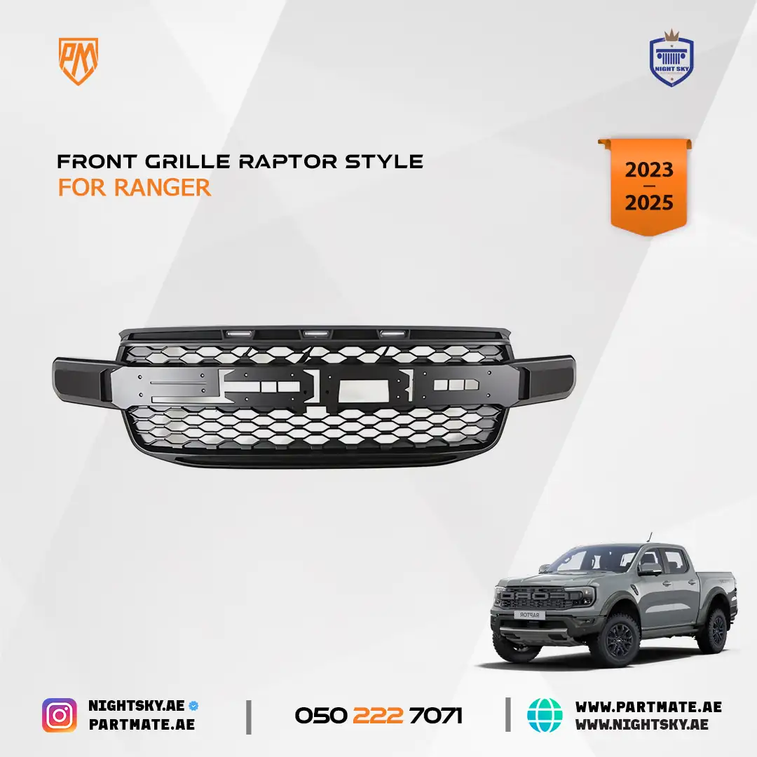 The Ford Ranger T9 2023–2024 Front Grille Black Upper with LED Light is designed to upgrade the front-end styling of your pickup with a bold, modern look. Featuring an integrated LED light, this grille enhances visibility while giving your Ranger T9 a more aggressive and premium appearance—ideal for daily driving and off-road use in Dubai, Sharjah, and across the UAE.