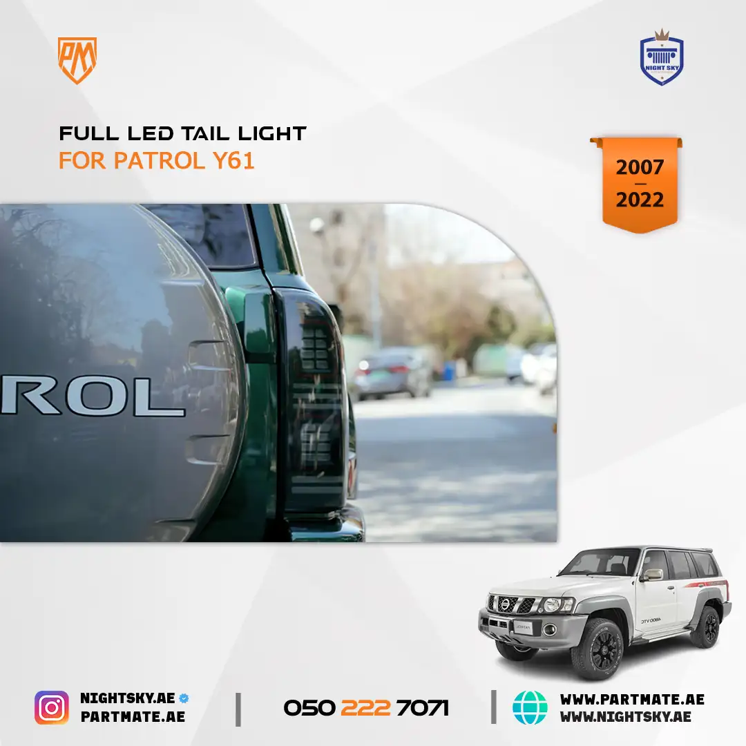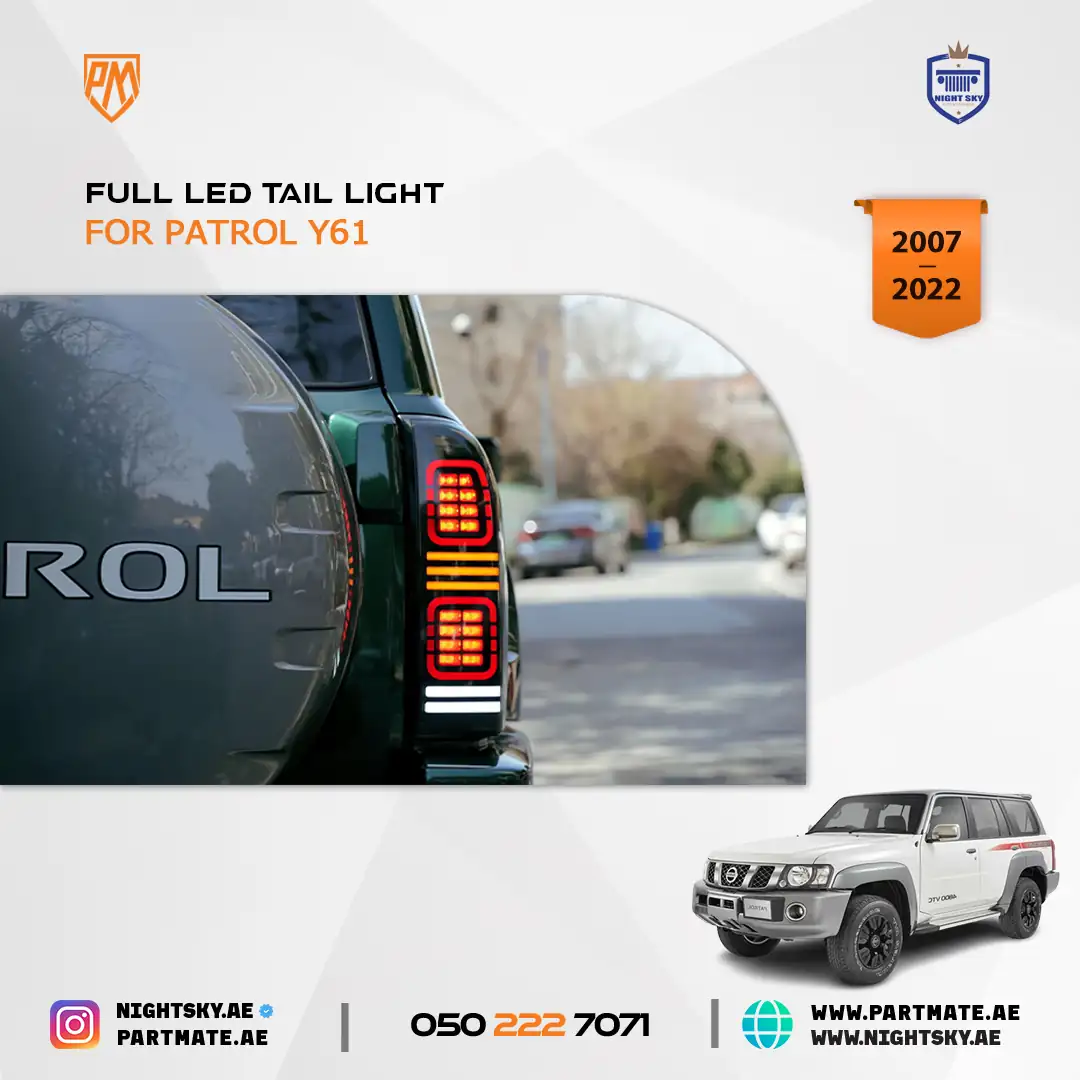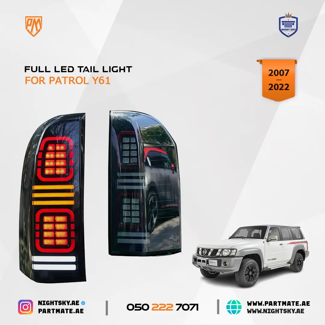 The Motion Modified LED Tail Light Assembly is designed to upgrade rear visibility, safety, and modern styling for the Nissan Patrol Y61. Compatible with models from 2007 to 2022, this rear lamp features advanced LED technology with a distinctive 5th tail light design, delivering a bold OEM-plus appearance—perfect for daily driving and off-road use in Dubai, Sharjah, and across the UAE.