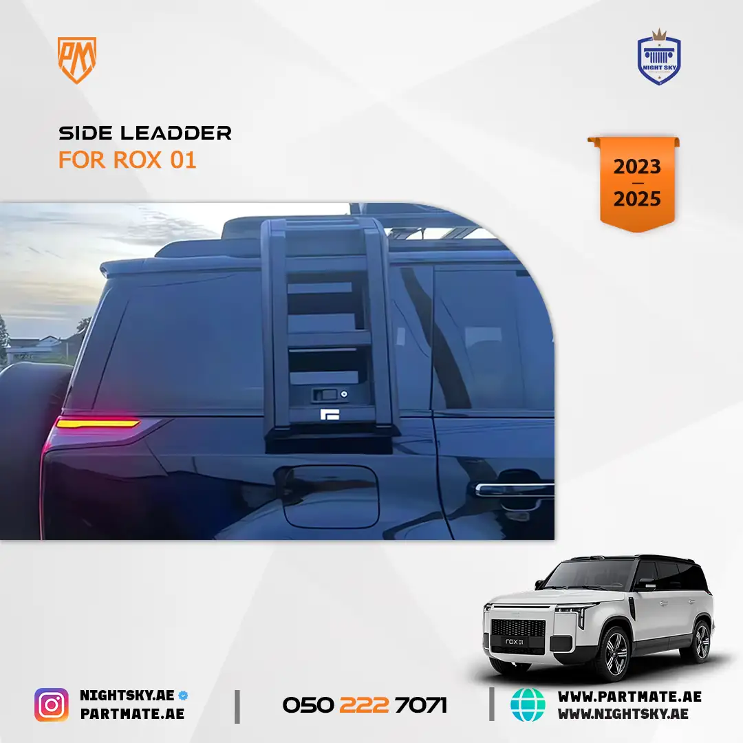 The ROX 01 Side Foldable Ladder is a practical and durable exterior accessory designed to provide easy side access to your vehicle. Ideal for SUVs and off-road vehicles, this foldable ladder helps you safely reach roof racks, cargo carriers, or rooftop tents, making it a perfect upgrade for drivers across Dubai, Sharjah, and the UAE.