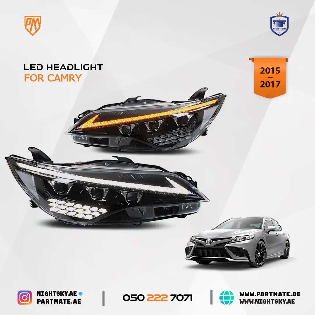 Give your Toyota Camry 2015β2017 a modern and premium lighting upgrade with these LED headlights featuring dynamic DRL start-up animation. Designed to enhance both visibility and style, this headlight assembly transforms the front look of your Camry while delivering brighter and more efficient lighting performance.