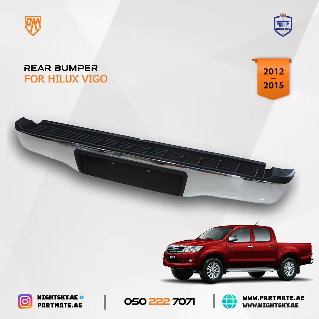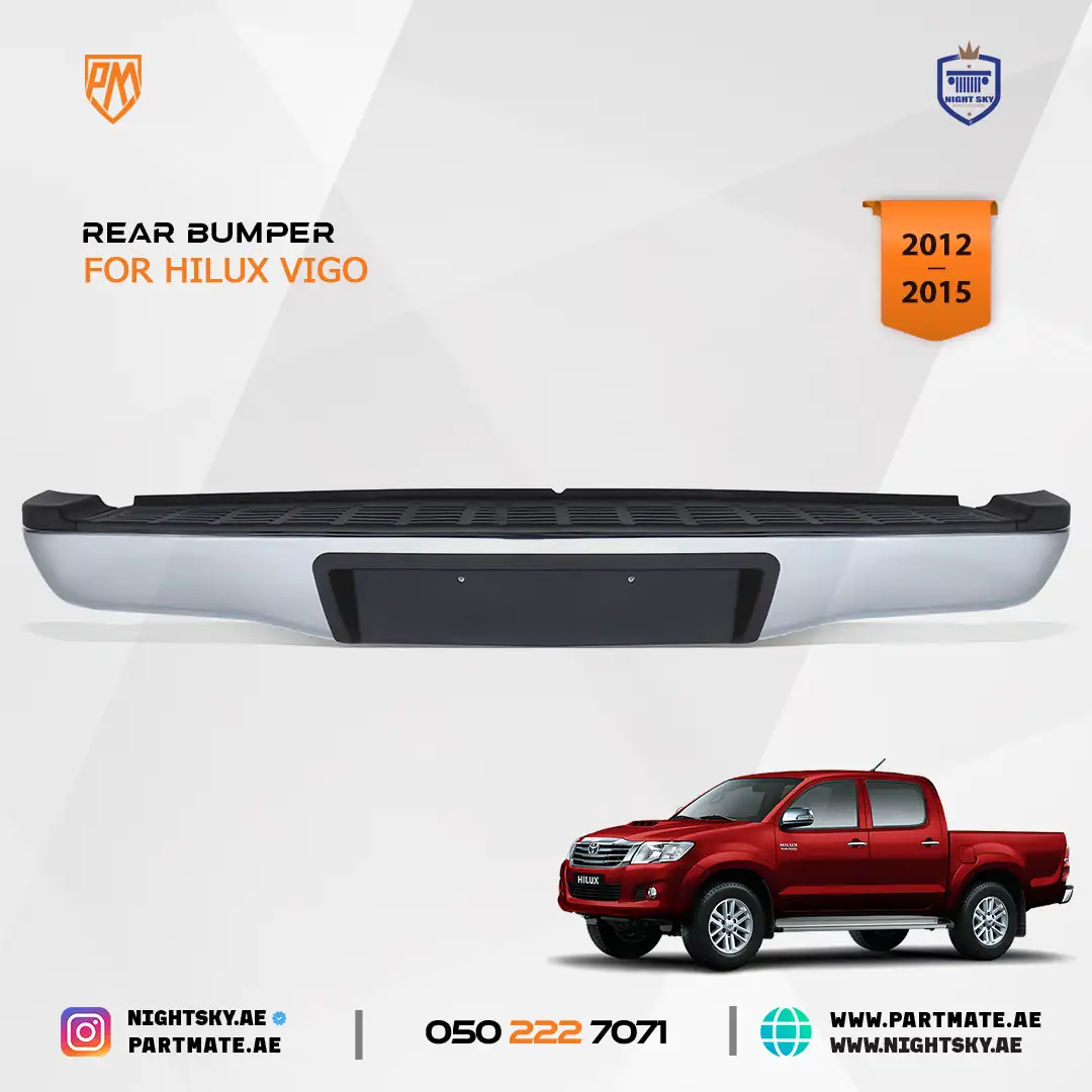 Upgrade your Toyota Hilux Vigo 2012-2015 pickup with this heavy-duty steel rear bumper designed for durability, protection, and rugged styling. Whether you use your Hilux for daily driving in Dubai, work duties across the UAE, or off-road adventures, this bumper offers enhanced rear protection while maintaining a strong, premium look.