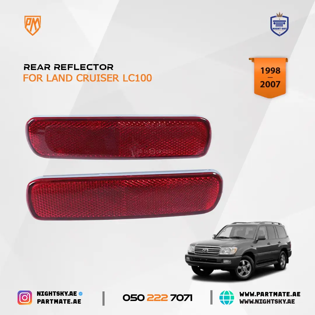 Restore the rear safety visibility of your Toyota Land Cruiser 100 Series or Lexus LX470 with this 2-piece rear bumper reflector housing set. Designed as a direct replacement, these reflectors help improve vehicle visibility to other drivers while maintaining the original factory appearance β ideal for driving in Dubai, Sharjah, and across the UAE.