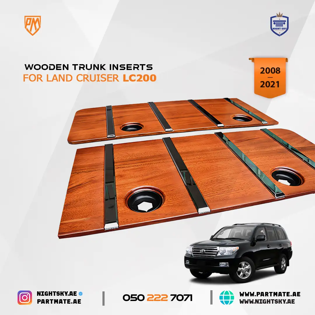 Upgrade the cargo area of your Toyota Land Cruiser 200 (2008-2021) with premium wooden trunk inserts designed for better organization, durability, and a refined interior look. Perfect for daily driving in Dubai, family travel across the UAE, or off-road adventures, these inserts help keep your cargo area neat, protected, and functional.
