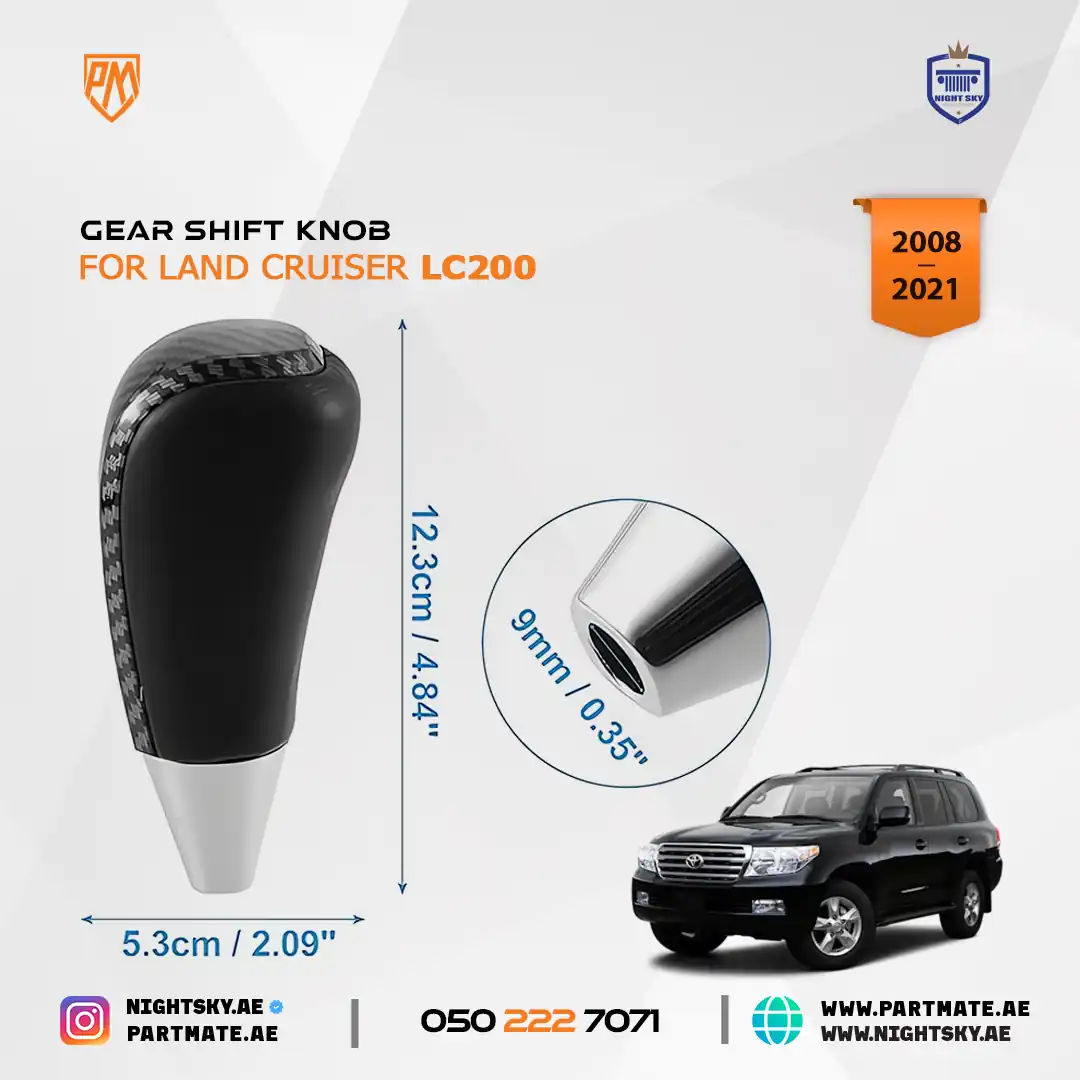 Upgrade your driving experience with this carbon fiber pattern gear shift knob designed for Toyota Land Cruiser 2016-2021, 4Runner 2003-2021 and Tundra 2008-2021. Offered by PartMate and powered by Night Sky Auto in Dubai and Sharjah, it delivers a sporty and premium feel instantly.