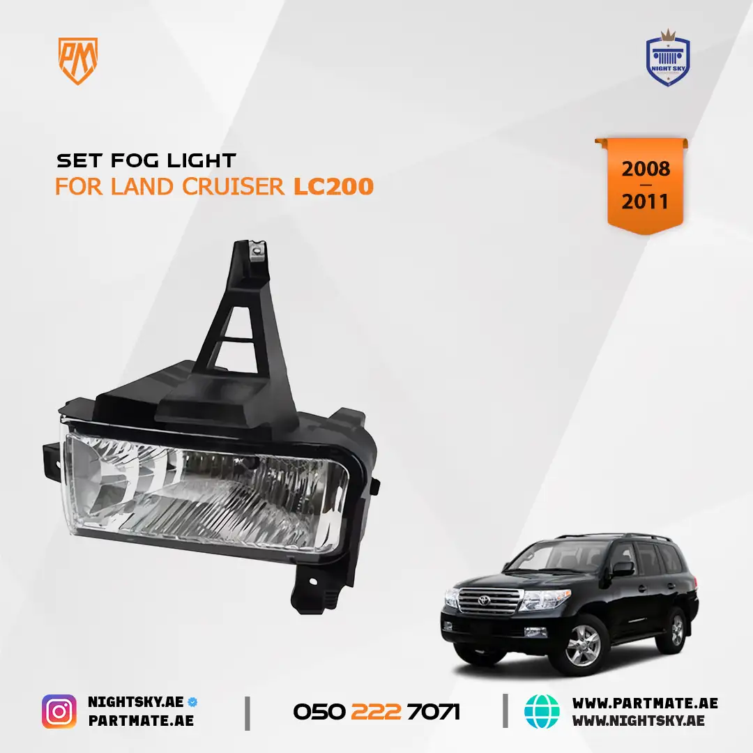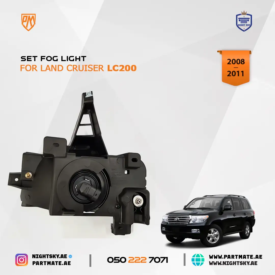 The Front Fog Light Kit is designed as a direct replacement to restore clear visibility and factory performance for the Toyota Land Cruiser FJ200. Compatible with 2007–2011 models, this fog lamp set improves driving safety in fog, rain, and dusty conditions—ideal for daily driving and desert use in Dubai, Sharjah, and across the UAE.