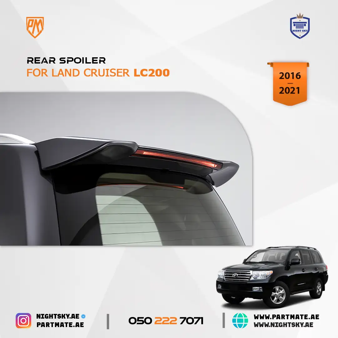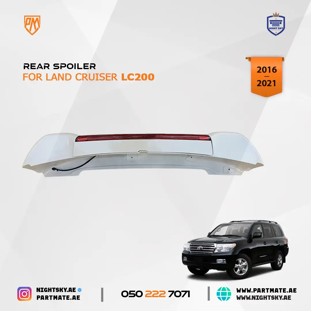 Enhance the sporty appearance and rear styling of your Toyota Land Cruiser FJ200 2016-2021 with this premium rear spoiler wing. Designed for OEM-style fitment, this auto rear clip spoiler adds a refined aerodynamic look while complementing the luxury SUV profile β ideal for driving in Dubai, Sharjah, and across the UAE.