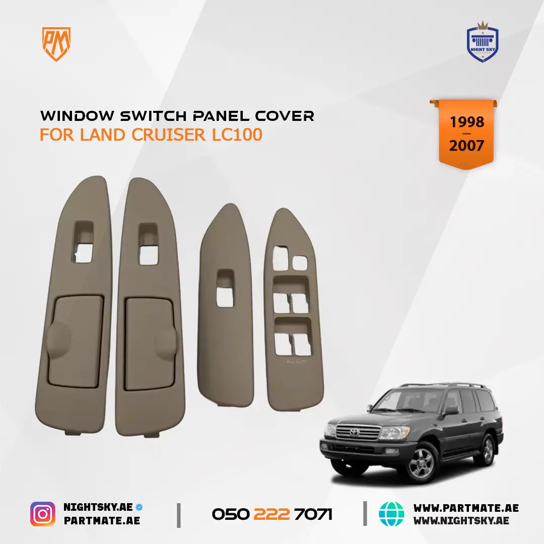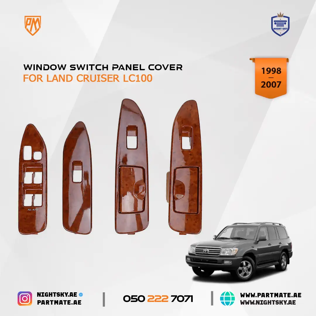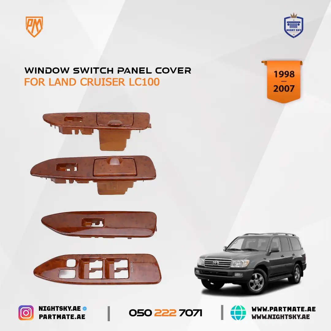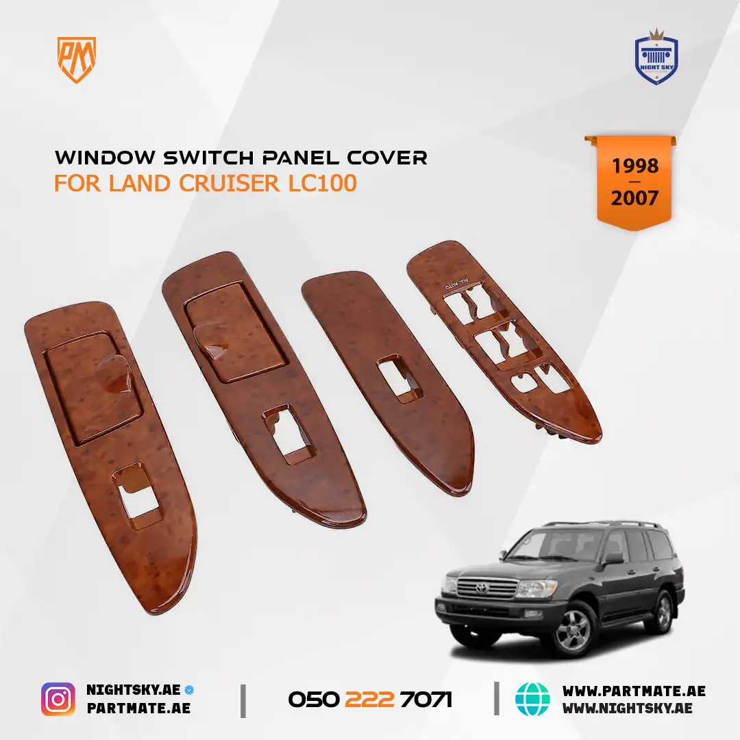 Enhance the interior appearance of your Toyota Land Cruiser J100 1998β2007 with this premium 4-piece window switch panel cover set. Designed for the front and rear left and right doors, these trim covers give your interior a refreshed and more refined look while protecting the original switch panels from scratches and wear.