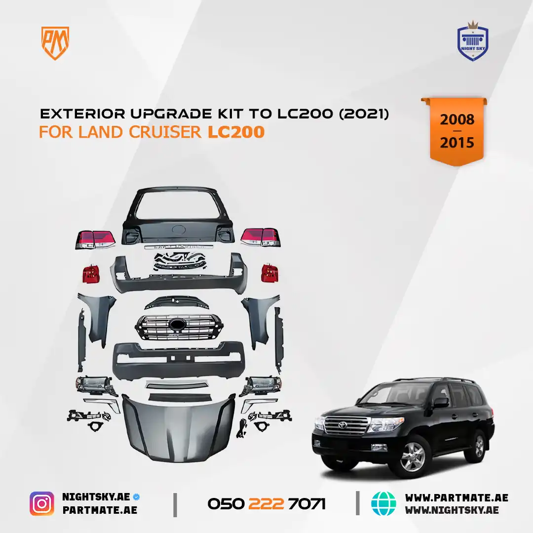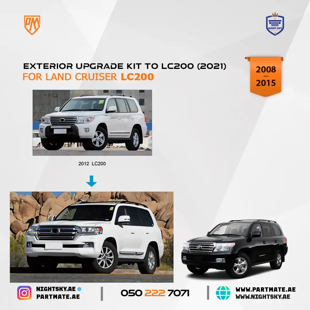 Transform your LC200’s exterior with this premium upgrade kit that converts 2008-2015 models to the modern 2021 look. Offered by PartMate and supported by Night Sky Auto in Dubai and Sharjah, it delivers a bold refresh that matches today’s luxury SUV standards.