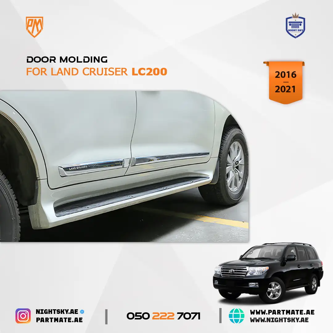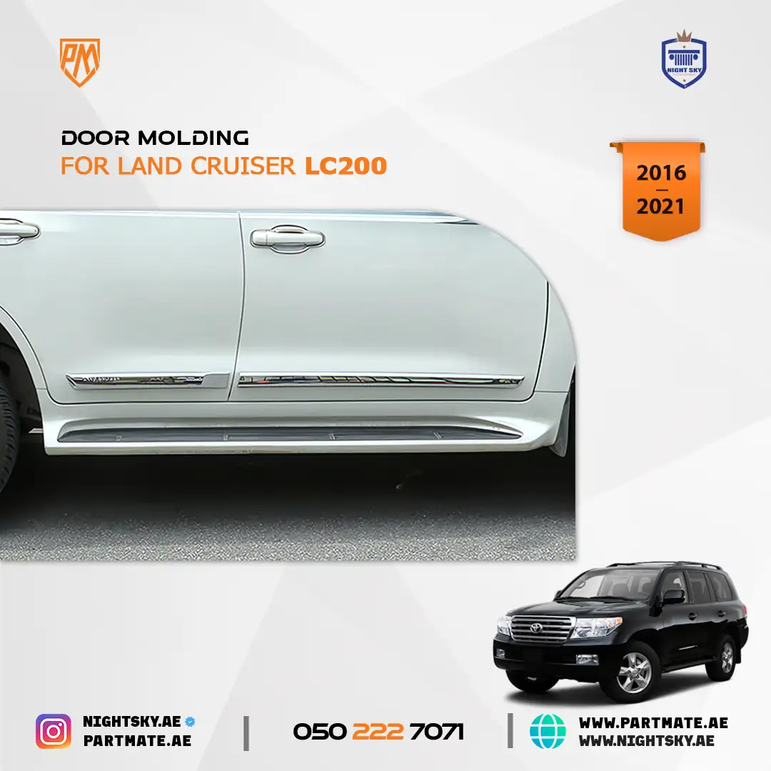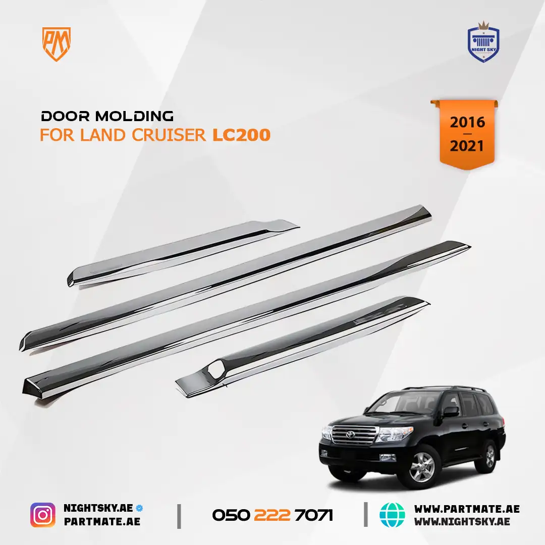 The Toyota Land Cruiser LC200 2016–2021 Chrome Door Molding Set is designed to enhance the exterior appearance of your SUV with a premium chrome finish. This stylish upgrade adds a refined look while protecting your doors from minor scratches and daily wear, making it ideal for luxury and off-road vehicles across Dubai, Sharjah, and the UAE.