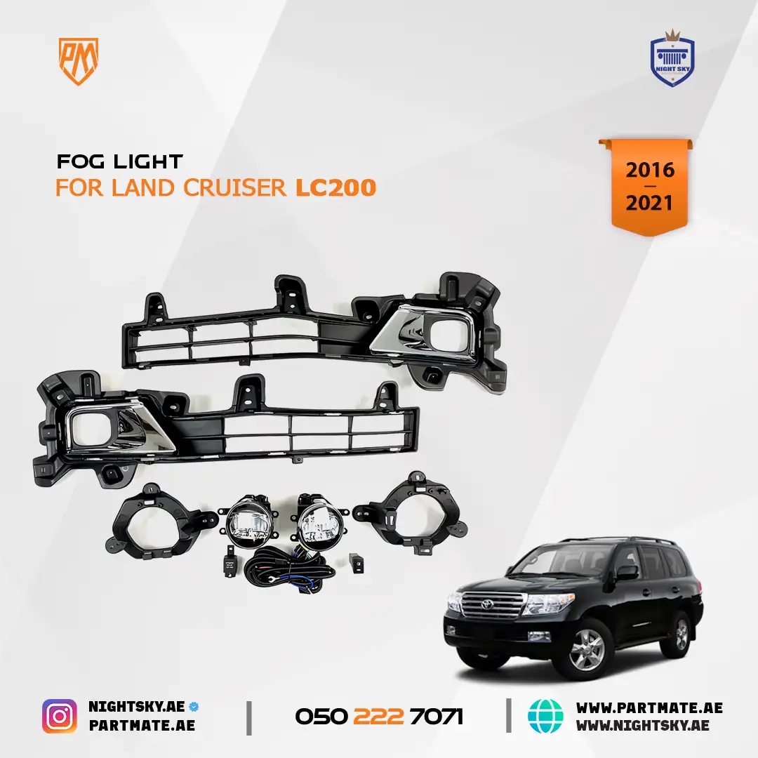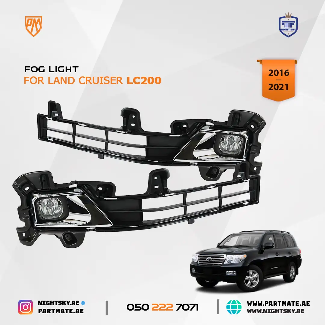 Improve visibility and safety on your Toyota Land Cruiser FJ200 / LC200 2016 with this complete front fog light assembly kit. Designed for reliable illumination in fog, dust, rain, and low-light driving conditions, this fog lamp set enhances road safety while maintaining the premium factory appearance β ideal for UAE driving conditions including Dubai highways and desert environments.