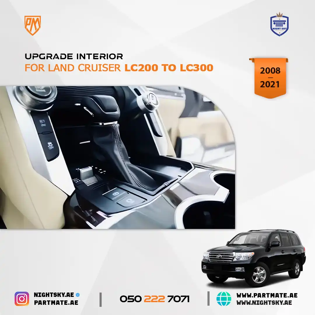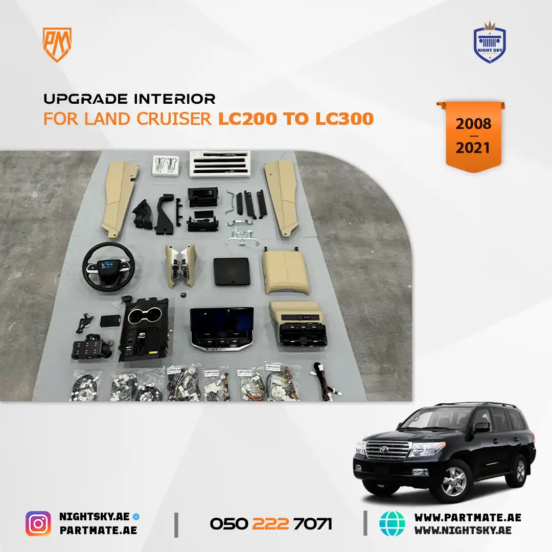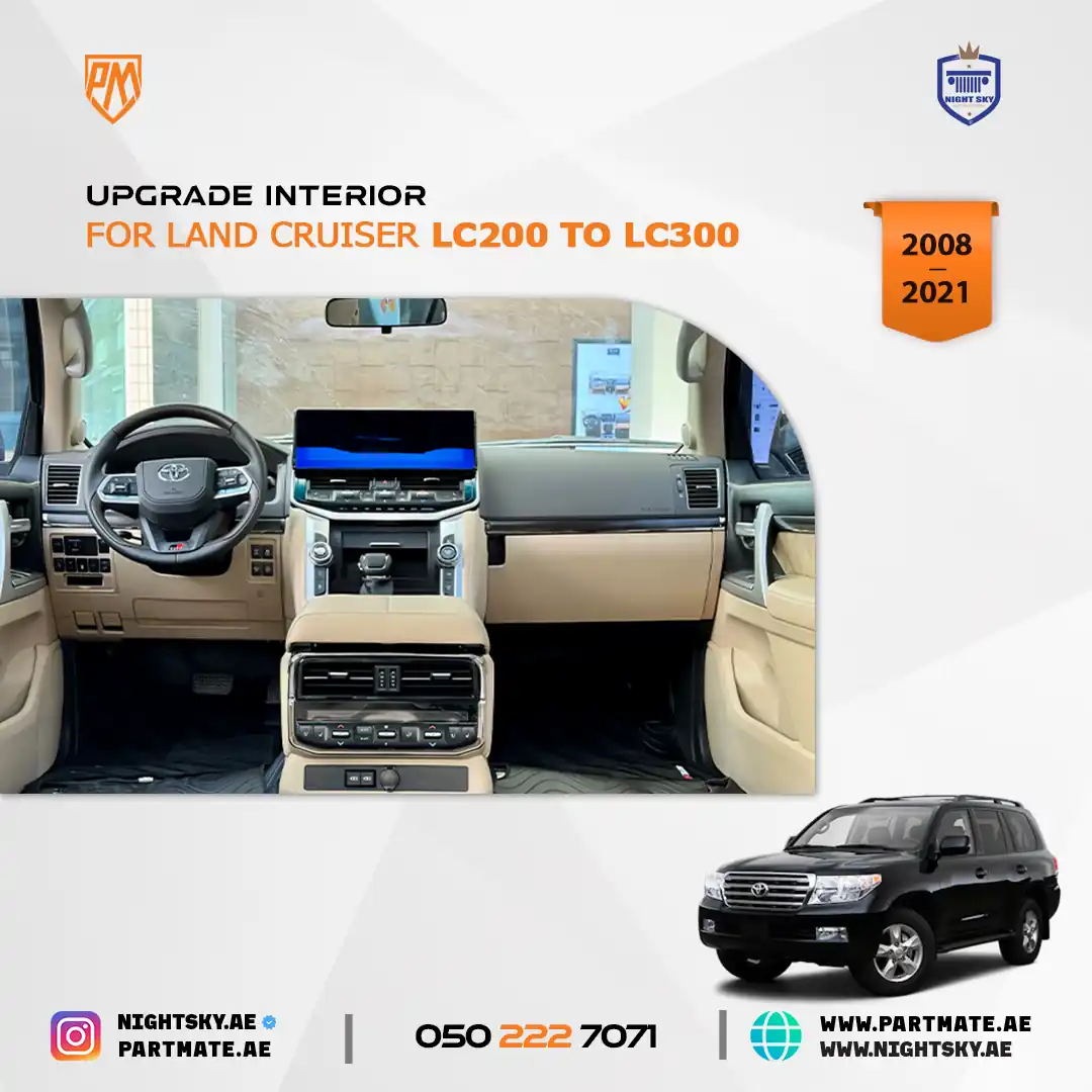 Transform your LC200 into a modern LC300-style cabin with this premium interior upgrade kit. Offered by PartMate and backed by Night Sky Auto in Dubai and Sharjah, it delivers a dramatic refresh inspired by the 2024 Land Cruiser design language.
