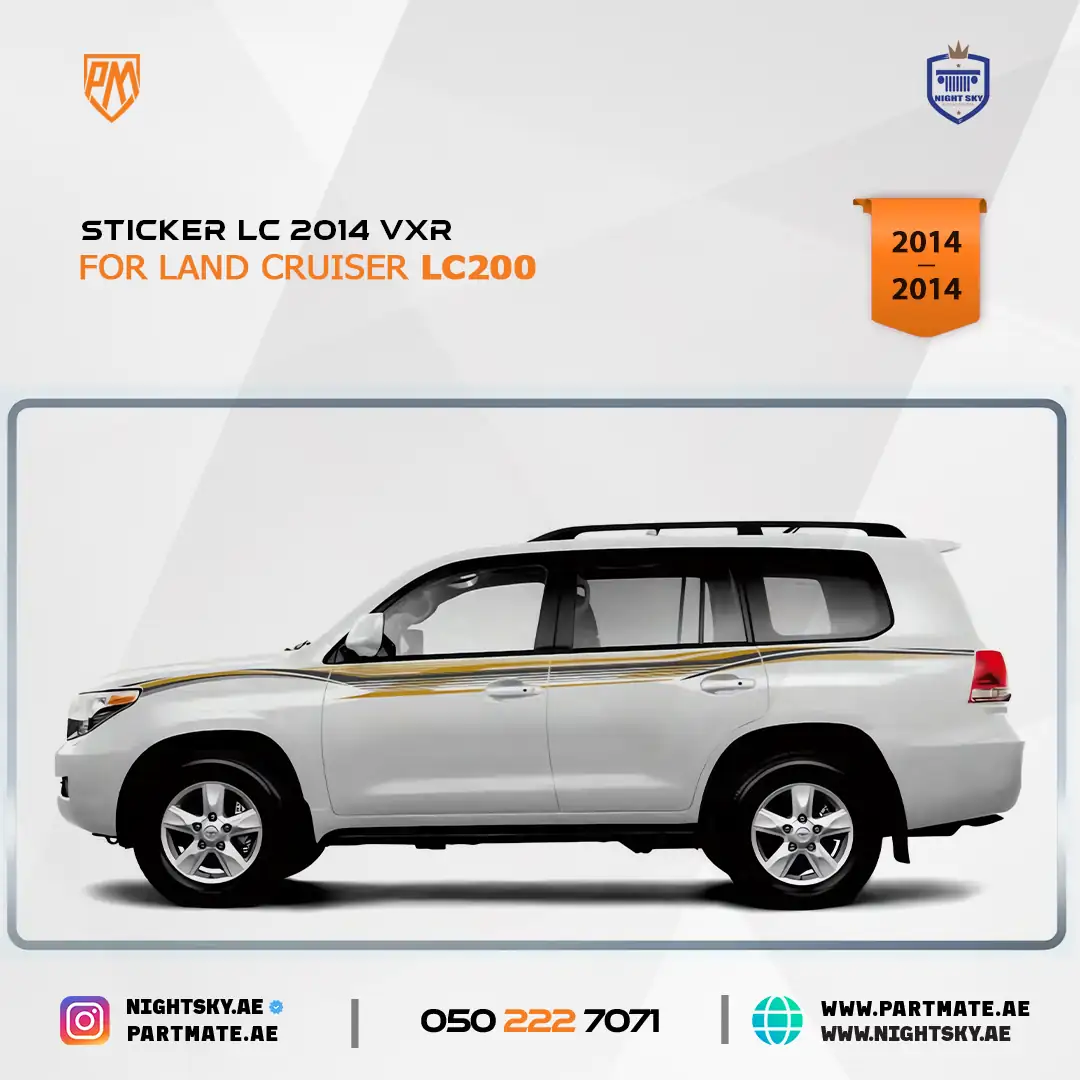 The Toyota Land Cruiser LC200 VXR Side Stripes 2014 are designed to restore or enhance the original VXR exterior styling of your SUV. These factory-style side decals give your Land Cruiser a clean, sporty, and premium look while maintaining an OEM appearance, making them ideal for vehicles driven in Dubai, Sharjah, and across the UAE.