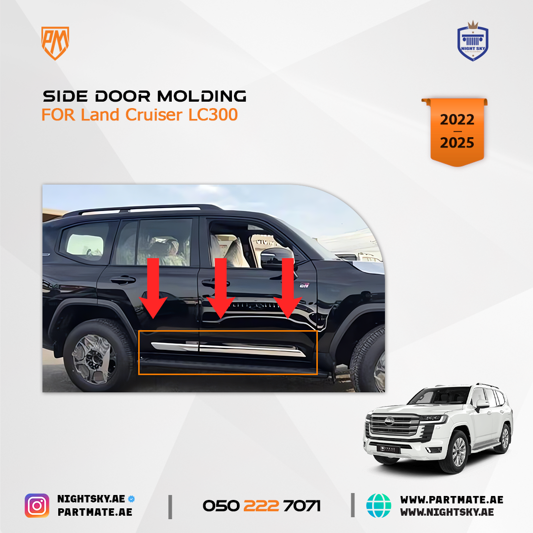 Enhance your Toyota Land Cruiser with our premium side door molding. Designed for 2022-2025 models, it adds style and protects your vehicle in harsh UAE weather.