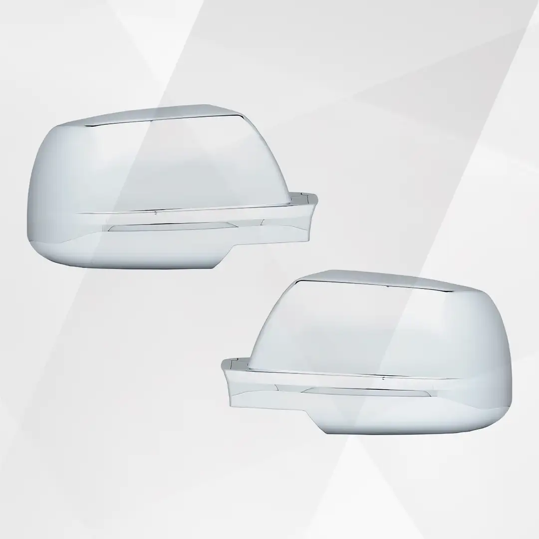 This chrome mirror cover set installs directly over the factory mirrors without drilling or modification, offering an instant visual upgrade with factory-style fitment.